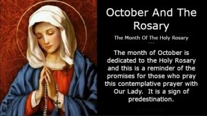 In this month of October, dedicated to the holy rosary, we ponder with Mary the mysteries of our salvation, and we ask the Lord to help us to be proclaimers of the Gospel by his word and by his life. Let us commit ourselves to saying the rosary with faith for peace in our families, in countries, and in the whole world. Being a month of devotion, both parishes will have adoration of the Blessed Sacrament and rosary on alternative Sunday afternoon. Come and pray.