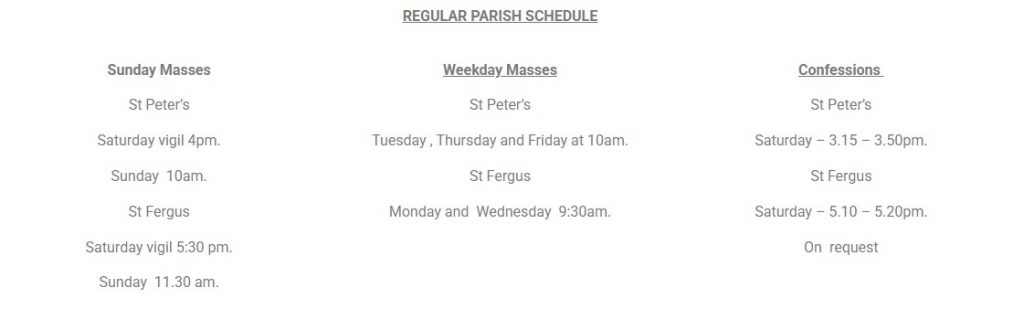 You can read the latest parish bulletin here. Third Sunday of EasterFirst Reading Act 2:14,22-33Responsorial Psalm 16:1-2,5,7-8,9-10,11Second Reading Peter 1:17-21Gospel Luke 24:13-25 Parish News SCHOENSTATT Welcome Please see our parish welcome and information booklet to find out all you need to know about parish life at Peter’s. Gift Aid Download Gift Aid and standing order forms. Volunteer Many of out groups are looking for additional help. Find out what you can do to help make St.Peter’s even better. Altar Server St. Peter’s Altar Server SSVP St. Peter’s parish SSVP group. Childrens Liturgy St. Peter’s Children’s Liturgy Parish council Minutes of meetings. SPRED Special Religious Development (SPRED) Program Safeguarding For help regarding the welfare of children and vulnerable adults. Just and Peace In Scotland Local News St. Peter's School St. Fergus School
